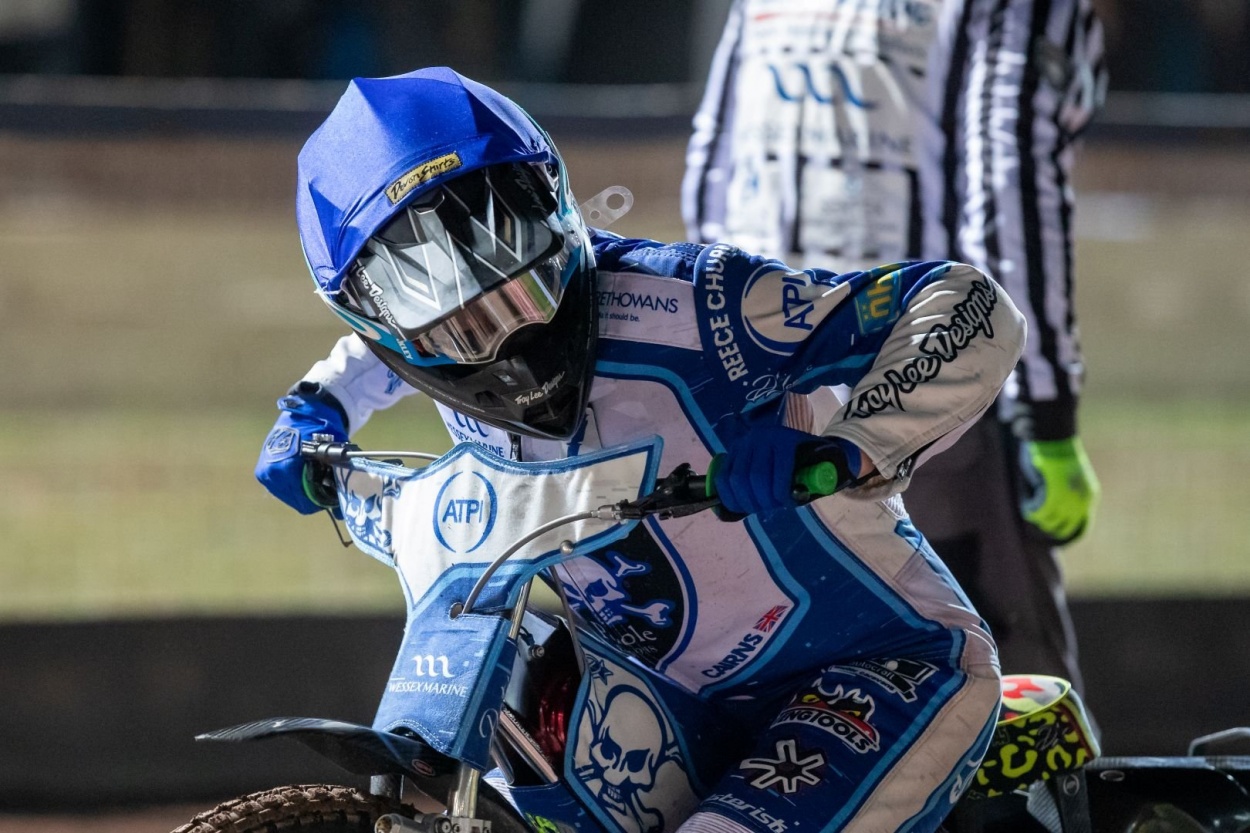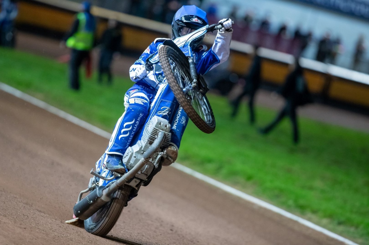 Whilst Poole have the mantra of going into every meeting with the intention and desire to win, they were only too aware that in this Cab Direct Championship Grand Final it was even more important to put the Glasgow Tigers on the back foot from the very outset. So whilst it was no major surprise to have the familiar sight of Richard Lawson comfortably out front, heat one did produce the less familiar sight of Chris Harris trailing home in last place, as Poole picked up the first of three successive 4-2 heat gains. Freddy Hodder's persistence paid off in heat two as he managed to get by Paul Starke for second place, whilst sharp starter William Cairns collected a race win in his debut Championship Play Off Grand Final. Skipper Zach Cook was smart in heat three going by Dan Thompson, but Lewi Kerr tried the same move without the same level of success and had to spend the rest of the race defending off the interests of Leon Flint. Heat four had Anders Rowe producing a splendid first turn to take command but alas, Cairns struggled into the first turn and lost valuable ground, although to his credit he did close in a fair deal on Max Perry as the race evolved. Cook and Kerr did a solid job in keeping the lively Villads Nagel at distance from race leader Harris as the first third of this home leg was completed with Poole holding a slender six point lead (18-12).