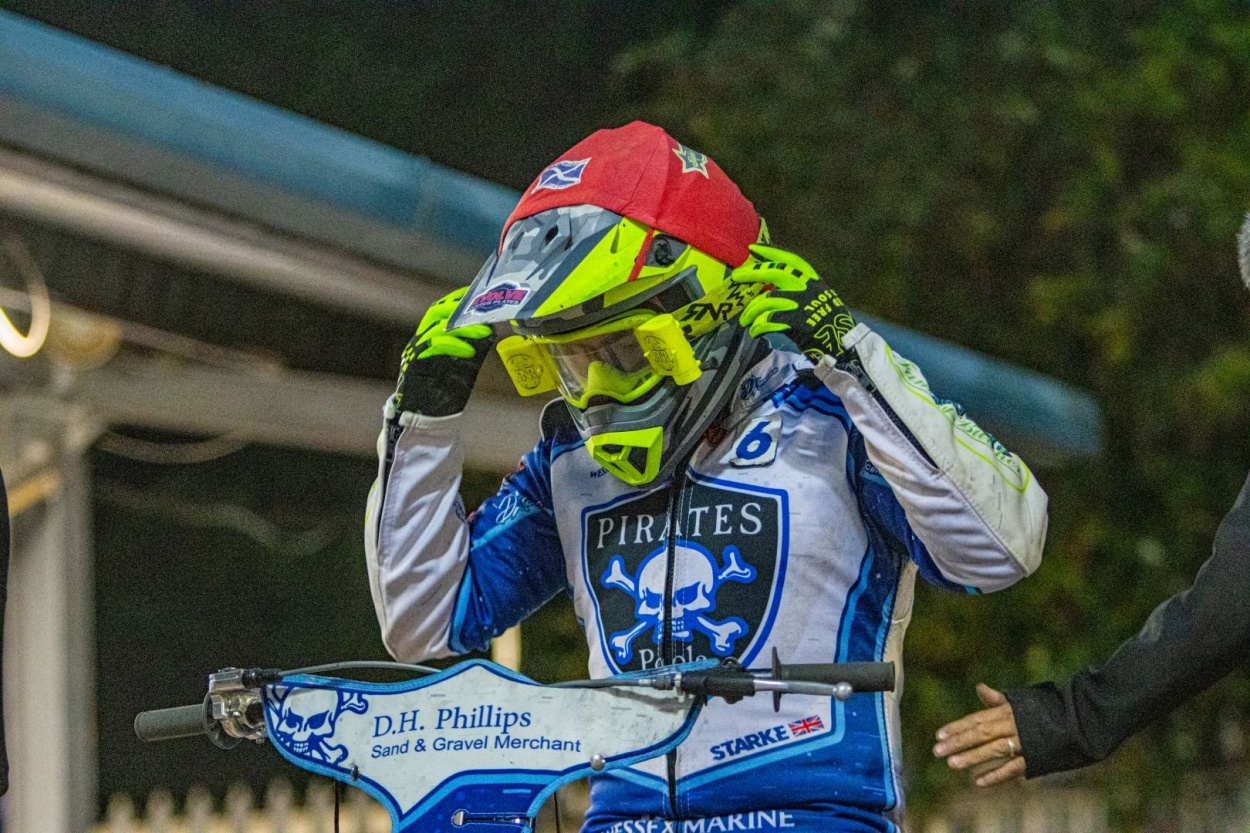 The semi-final started strongly for the defending champions as Richard Lawson and Tobias Thomsen struck big time with a 5-1 over Charles Wright and Jake Mulford but if Poole fans thought that would be the pattern of the night they had a rude awakening when Ace Pijper and Jody Scott, did just what their team manager Gavin Parr, had threatened, restoring parity to the scores with a fairly comfortable 5-1 of their own. Trading continued with Zach Cook and Lewis Kerr investing in another for Poole. Anders Rowe, after earning a warning for premature movement at the start, produced a battling ride to oust Danny King (no mean feat) whilst Will Cairns backed up in third place at the expense of Pijper. But having put at least a heat advantage between themselves and Redcar, the Pirates were quickly brought back under control as Wright and Mulford took advantage of Cook running too wide at the first turn. (16-14)
